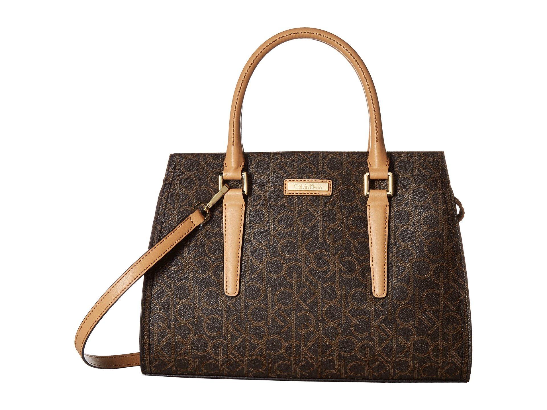 Heshe womens leather handbags tote bag top handle bag hobo shoulder handbag designer ladies purse. Calvin klein authentic brown/khaki/camel signature tote, calvin klein bag cross body ebay. Visit the calvin klein store. Coated canvas tote allover ck logo with leather trim. Buy calvin klein women's brown monogram crossbody.