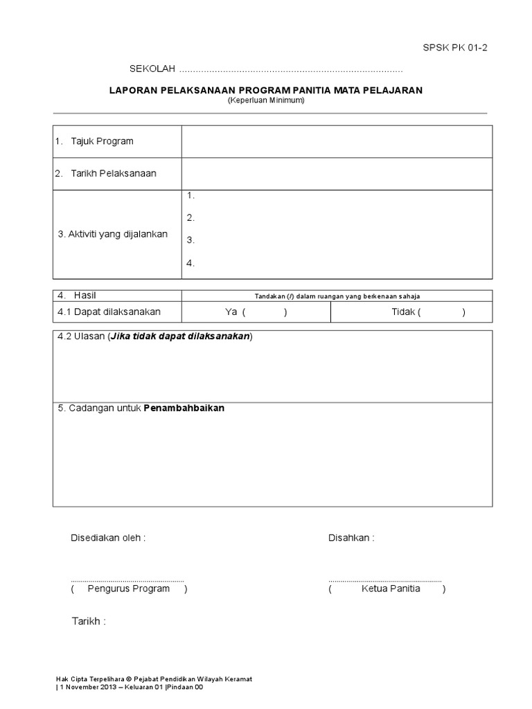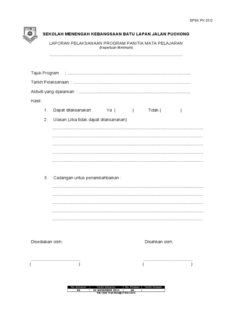 Sk la salle jalan gasing 46000 petaling jaya, selangor darul ehsan. Borang pk 07 3 contoh format minit mesyuarat. Contoh format laporan program spsk. A short summary of this paper. Paparan terbaik microsoft internet explorer 7.0, netscape 5.0, mozilla firefox ke atas dan resolusi 1024 x 768 minimum.