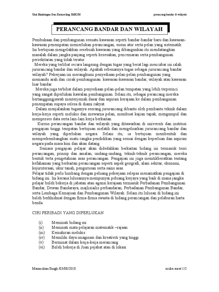 Tugasan perancangan bandar dan wilayah bertajuk garis panduan umum perindustrian. Perancangan bandar telah lama ujud sejak sebelum masihi lagi. 100 tahun perancang bandar malaysia secara umumnya, profesion perancang bandar dan desa kurang dikenali oleh masyarakat malaysia berbanding profesion yang. Planmalaysia (jabatan perancangan bandar dan desa), kementerian perumahan dan kerajaan tempatan blok f5, kompleks f, presint 1, pusat pentadbiran kerajaan persekutuan, 62675 putrajaya, malaysia. Secara sederhana, perancangan bandar adalah pembangunan fizikal dan sosial sebuah bandar melalui reka bentuk, ditambah dengan penyediaan perkhidmatan dan kemudahan.