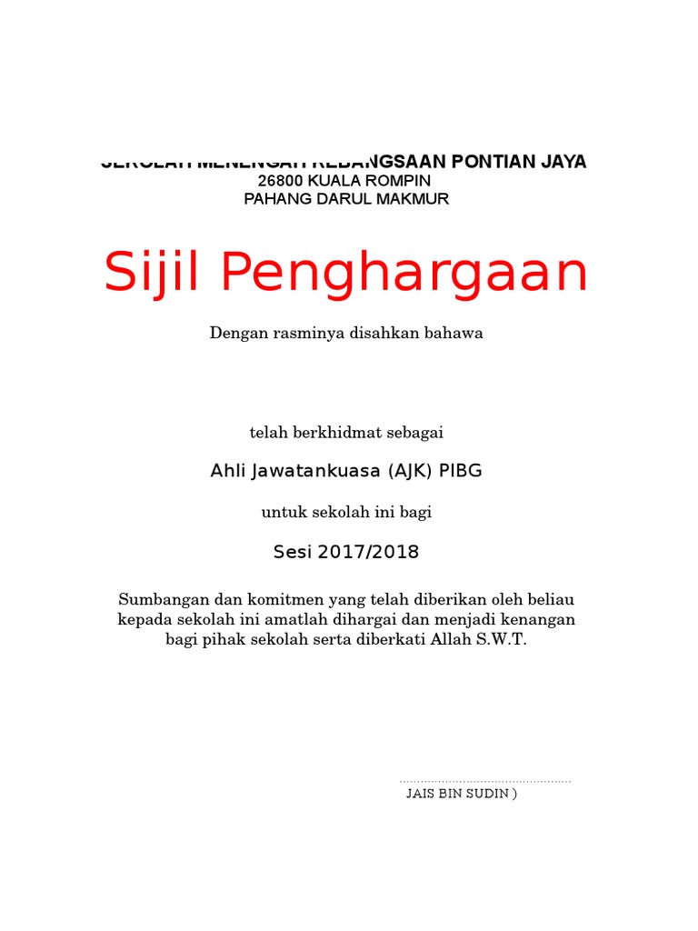 Sijil Penghargaan Tokoh Murid from imgv2-1-f.scribdassets.com Ada berbagai contoh surat undangan dengan berbagai jenis kegiatan seperti surat undangan rapat, pernikahan, reuni, dan sebagainya. Slip kedatangan / buku log dan/atau; Disini ada beberapa contoh pendahuluan ✅ dari berbagai topik, seperti pendahuluan laporan ✅ proposal dan makalah. Wayne rooney adalah seorang warga negara inggris yang memiliki 25% saham atas pt. Sijil pencapaian sijil penyertaan peribadi sijil penyertaan sekolah piala beg sekolah. Rifqi amin (tesis terbaik tahun 2013). Tahniah.dan teruskan kecemerlangan dan kegemilangan pengakap 65 jerantut, smk sungai retang bersama unit udara pengakap udara pahang. Klausa 5.1 perjanjian tersebut juga menyatakan bahawa baki pembayaran tersebut hanya akan dibuat apabila defendan menerima sijil perakuan penyiapan dan pematuhan daripada pihak majlis bandaran seremban.