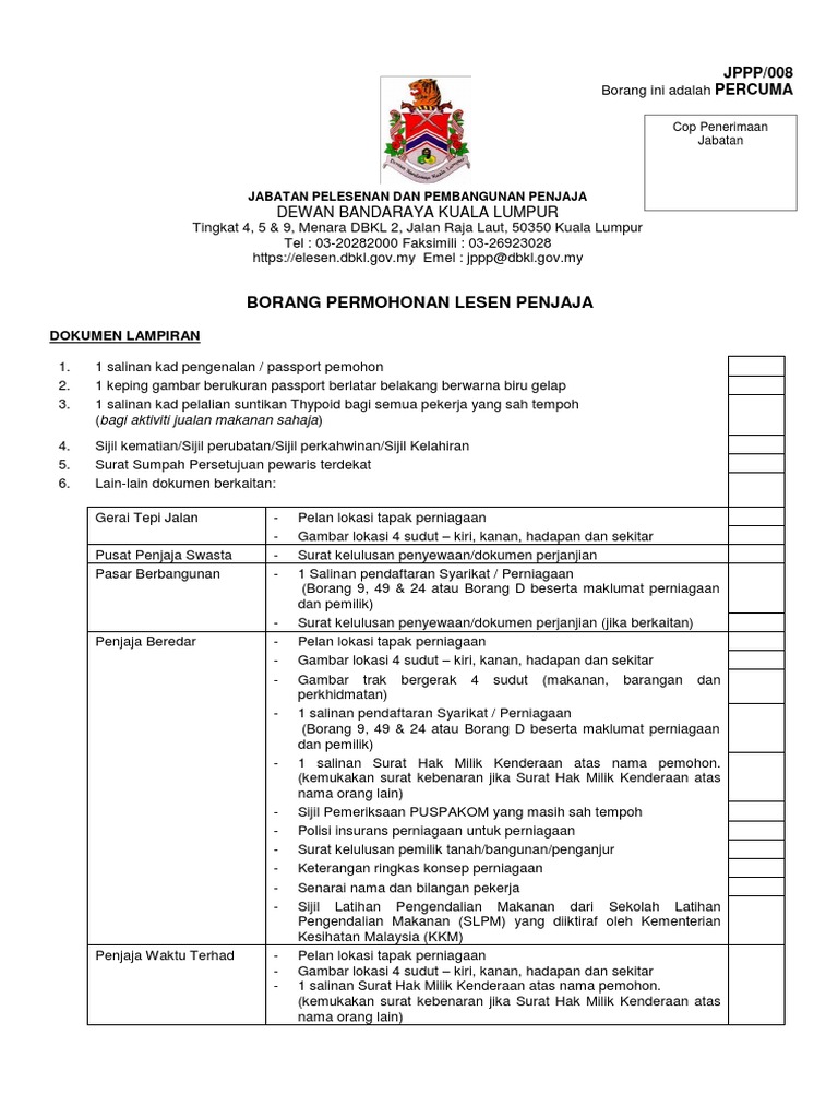 Bernama Permit Sementara Dbkl Untuk Penganggur Warga Kota from www.bernama.com Jabatan pembangunan kemahiran logo jpk. 1.2 lesen perniagaan tidak berisiko (tempoh 24 jam) 1.2.1 lesen premis 1.2.2 lesen gerai makan dalam kedai makan 1.2.3 lesen penjaja menetap 1.2.4 lesen penjaja. Melaksanakan kutipan hasil melalui fi lesen, sewaan gerai pasar dan pusat penjaja dbkl. Memproses permohonan lesen perniagaan tred dan pernigaaan. Jabatan pelesenan dan pembangunan penjaja dewan bandaraya kuala lumpur. Menyediakan gambar lokasi dan peralatan niaga. Bahagian pelesenan ,jabatan pelesenan dan penguatkuasaan, majlis perbandaran muar. Riyadi dan deddy supriyadi bratakusumah (2005).
