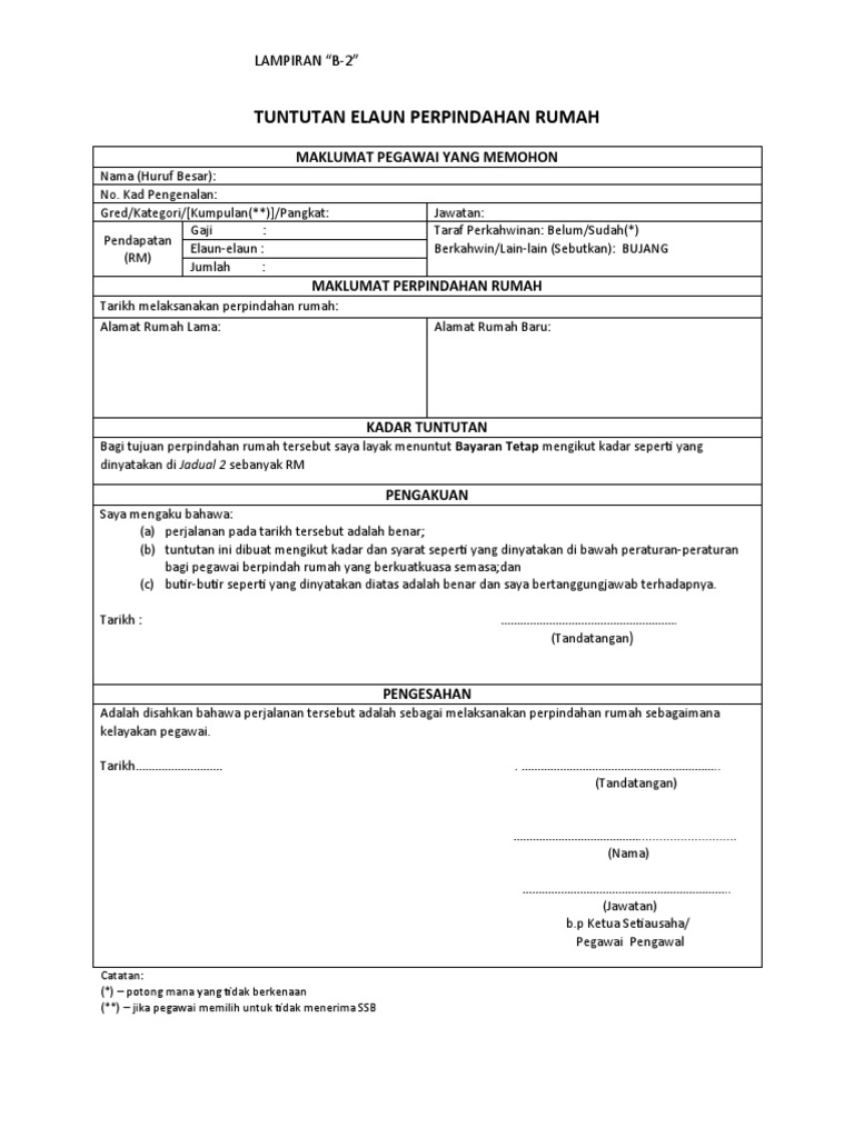 Borang tuntutan pindah rumah kakitangan awam terkini.