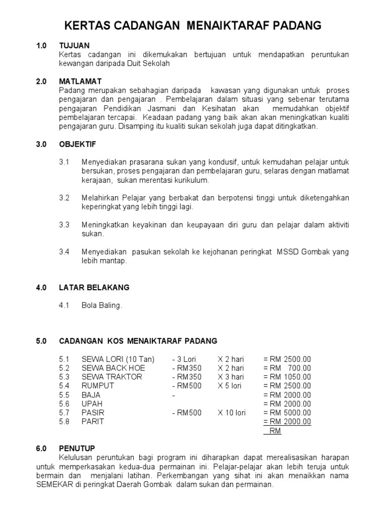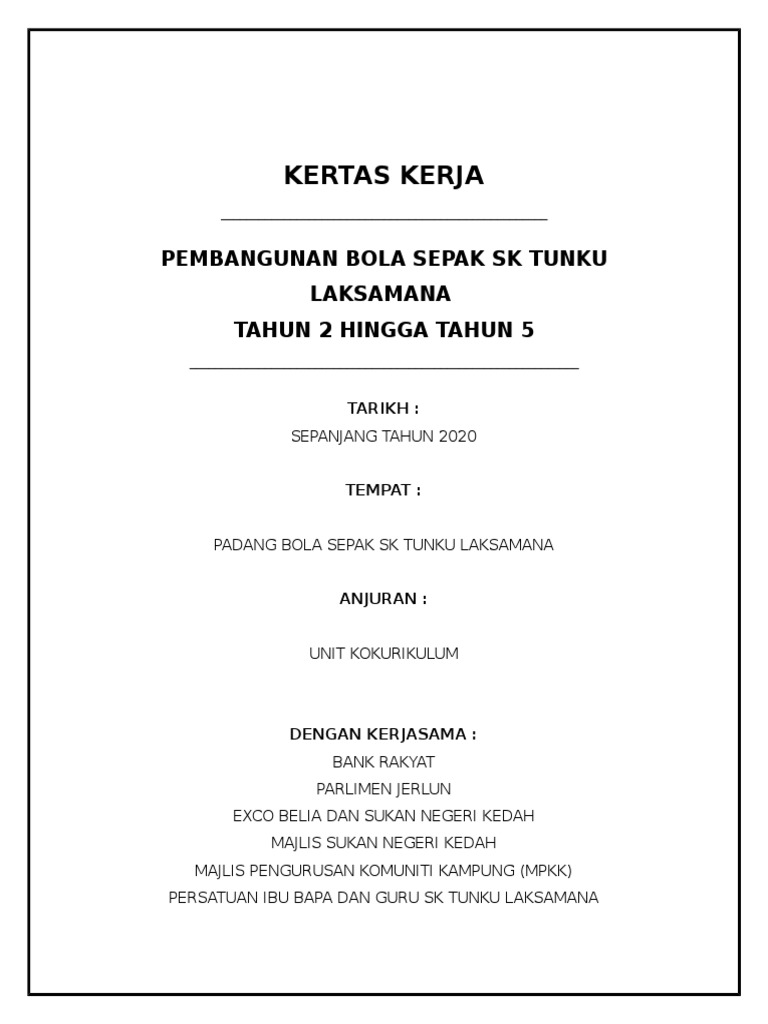 Contoh Kertas Kerja Permohonan Bina Gelanggang Serbaguna Docx Document from cdn.vdocuments.mx Kertas kerja pembinaan padang bola sepak. Maybe you would like to learn more about one of these? Check spelling or type a new query. We did not find results for: